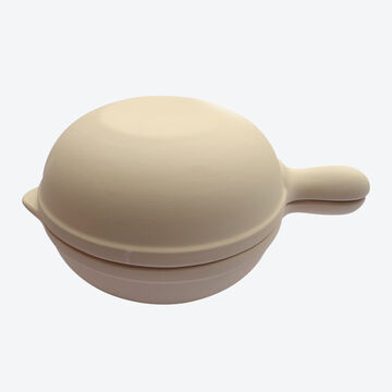 Gewaschene Kartoffeln mit Schale ohne Wasser in den unteren Teil des Rösters füllen. Deckel auflegen und bei 220 °C für 45 Minuten im Backofen garen. Die Kartoffeln entwickeln einen ausgezeichneten, aromatischen Geschmack, sind außen fein geröstet und innen herrlich weich. Auch für Maronen geeignet. Gefertigt in einem der ältesten Familienbetriebe im Elsass mit 180-jähriger Geschichte. Vor der ersten Benutzung wässern. Naturton, gebrannt bei 1.100 °C, unglasiert, Ø 24 cm, mit Griff 36 cm lang, Höhe mit Deckel 16,5 cm, wiegt 2,8 kg, für 1,5 kg Kartoffeln, Handwäsche empfohlen. Nicht Feuerfest.