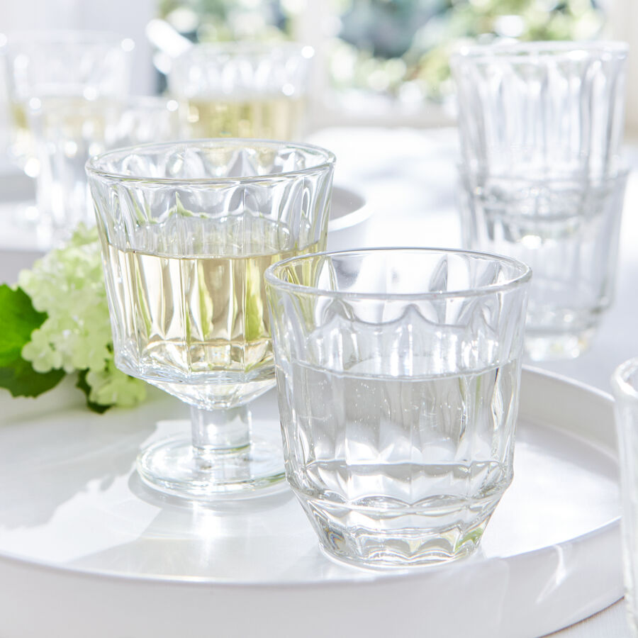 Klassisch französische Wassergläser bezaubern mit funkelnden Lichtreflexen