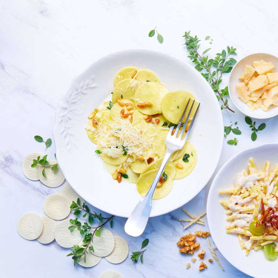 In meisterhafter Handarbeit entsteht unsere traditionelle Pasta aus Ligurien nach überliefertem Rezept. Ausschlaggebend für ihren guten Geschmack sind Qualitäts-Hartweizengrieß und frisches Quellwasser. Ihre angenehm feste Konsistenz bewirkt die sortenspezifische, langsame und schonende Trocknung (18 Stunden). Croxetti: Dank ihrer porösen Oberfläche und den Vertiefungen nimmt die münzförmige Pasta, die auch unter dem Namen Corzétti bekannt ist, Saucen besonders gut auf. Einmalig harmoniert sie mit Pesto, Pilz- und Walnuss-Saucen. Der Ursprung der Croxetti liegt bereits in der Antike, was sie zu einer der ältesten Nudelsorten Italiens macht. Wohlhabende Familien ließen die runden Nudeln in früheren Zeiten mit ihrem Familiensymbol verzieren, um ihre Gäste zu beeindrucken. Den Namen erhielt die Sorte durch den Holzstempel (Croxetto), der das Emblem in den Teig bannte. Bis heute stellen traditionelle Werkstätten in Genua Holzstempel für Croxetti her.