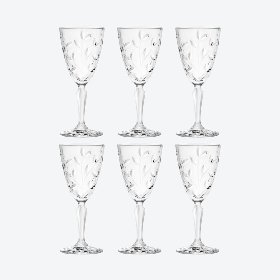 • Produktbild für 'Klassische Weißwein-Kristallgläser mit Blätterdekor für stilvollen Genuss'