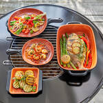 Auf dem Grill, über offener Flamme, direkt in der Glut oder auch im Backofen bereiten Sie darin Fleisch, Fisch, Gemüse, Aufläufe perfekt zu. Bei Gebrauch entstehende Craquelé-Risse sind ein unschädliches, typisches Terracotta-Merkmal. Glasiert, hitzebeständig bis +930 °C, spülmaschinenfest.