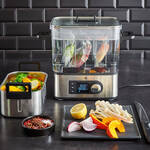 Beide Kochtechniken meistert das kompakte Gerät dank wählbarer Automatik-Programme oder freier Temperaturwahl. Perfekt gelingen darin Fisch, Fleisch oder Gemüse durch langsames Garen bei exakten Temperaturen zwischen 35 °C bis 90 °C.