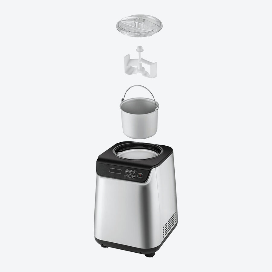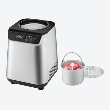 Einfach Zutaten einfüllen. Im Nu kühlt die leise arbeitende Kompressor-Maschine die Temperatur auf -35 °C herunter. Mit drei einstellbaren Programmen werden bis zu 1,2 l Eis in weniger als einer Stunde automatisch zubereitet. Durch die Nachfüllklappe können gehackte Nüsse, Obst oder Schokoladenstreusel später zugegeben werden.