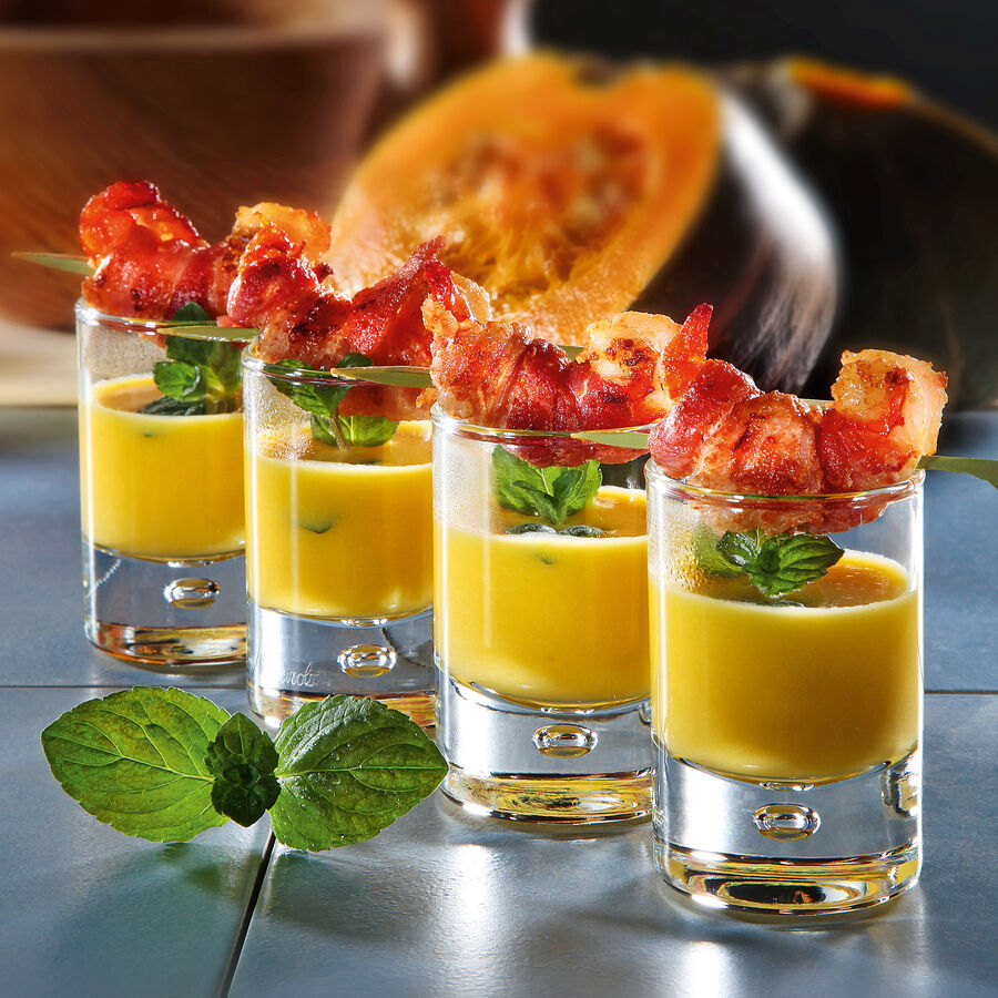 • Produktbild für 'Kürbis-Ziegenkäse-Creme mit Scampispießen'