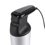 Rostfreier Edelstahl, Ø 11 cm, 50,5 cm hoch (Edelstahlstab 29 cm), wiegt 1,2 kg, Multimesser titanbeschichtet, Edelstahl-Quirlscheibe, -Fleischmesser, 240V/350W, 1,7 m Kabel.