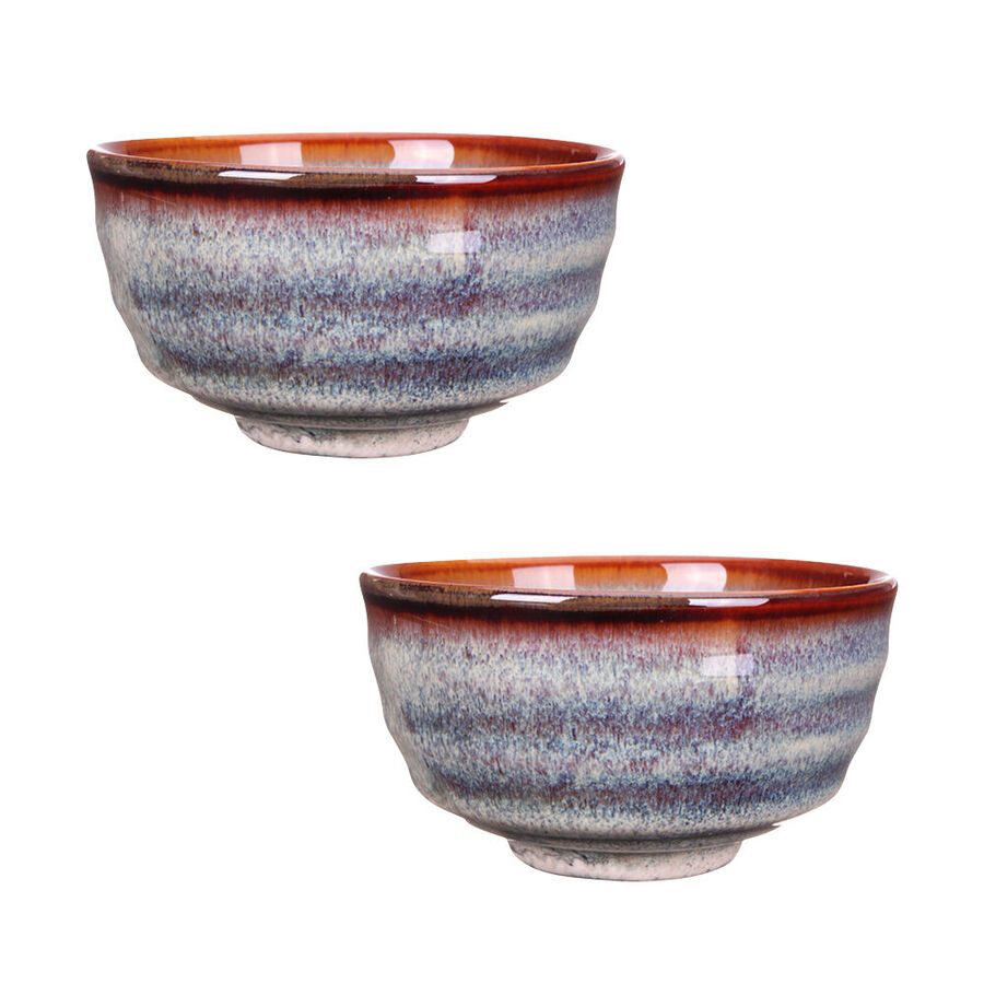 Diese schönen Matcha-Schalen (japanisch Chawan) werden traditionell für die Zubereitung und zum Servieren verwendet. Ihre typische Form lässt sich gut mit den Händen umschließen und hält den Tee warm, ohne die Hände zu verbrennen. Schlagen Sie darin Matchapulver mit dem Matcha-Besen auf und genießen Sie die japanische Tee-Spezialität stilecht.