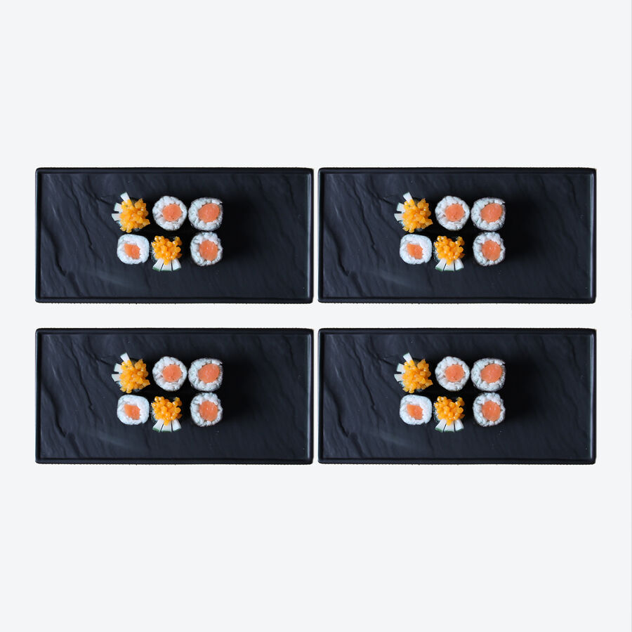 4 Stück Hartporzellan Platten, schwarz, rechteckig 25,5 x 12 x 1,5 cm (B/T/H)