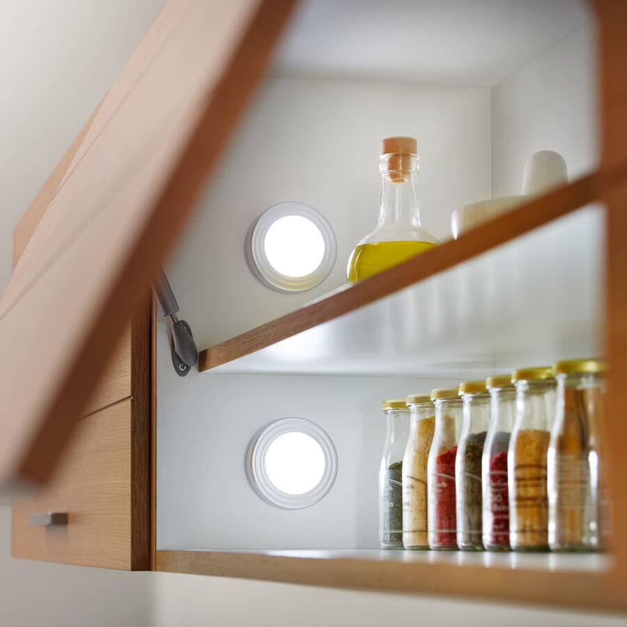 Ob im Treppenhaus, in Schubladen, Küchen- oder Kleiderschränken: Überall im Haus sorgen die kleinen LED-Lampen kabellos und flexibel für die gewünschte Beleuchtung. Magnetisch, inklusive Klebe-Halterung für nicht-magnetische Oberflächen.