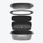 Ob Grillen, Braten, Dämpfen, Schmoren oder Backen: Mit diesem vielseitig nutzbaren, 5-teiligen Bräter- und Kochset gelingen sämtliche Speisen perfekt. Der Deckel des Bräters kann zugleich als Grillplatte verwendet werden. Der Glasdeckel fungiert zusätzlich als Schneidbrett. Mit eingelegter Silikonmatte wird der Dampfeinsatz zur Backform, in der sogar Kuchen gelingen. Silikonmatte und Glasdeckel können auch als Untersetzer genutzt werden.