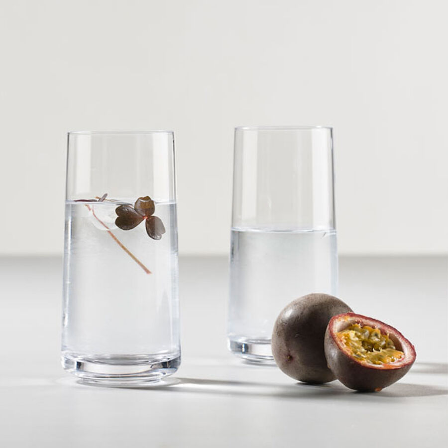Diese hochwertigen Gläser für die Bar oder den stilvoll gedeckten Tisch präsentieren sich modern, schlicht und elegant. Ihre klare, konische Form und der massive Boden sprechen alle Sinne an. Bemerkenswert ist die brillante Klarheit der mundgeblasenen Gläser. Die hohe Lichtbrechung lässt Getränke wunderbar funkeln und leuchten.