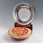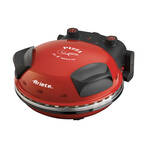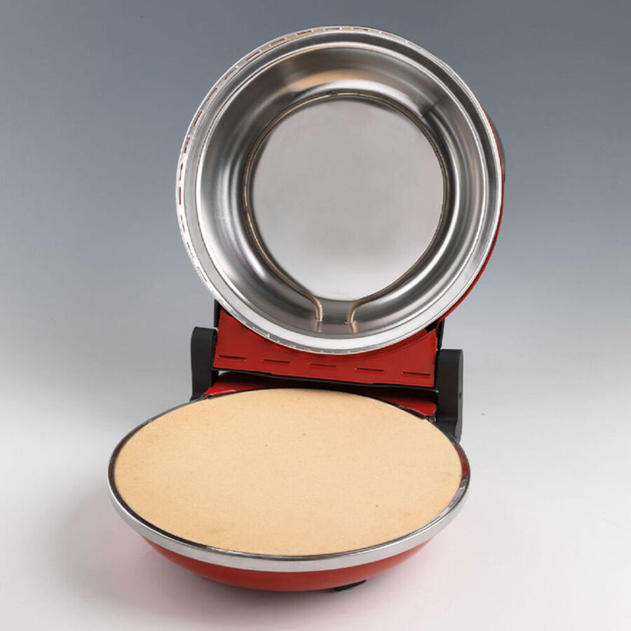 Korpus emaillierter Chromstahl, 33 x 35 x 20 cm (B/T/H), wiegt 5,4 kg, Backstein Ø 31 cm, 230V/1.200W, hitzeisolierte Hartkunststoff-Griffe, rutschfeste Hartkunststofffüße- und Griffe, Thermostat, stufenlose Temperatureinstellung, Überhitzungsschutz, Timer, Kontrollleuchte, 1,05 m Anschlusskabel. Kommt mit Pizzaschaufel aus Edelstahl.
