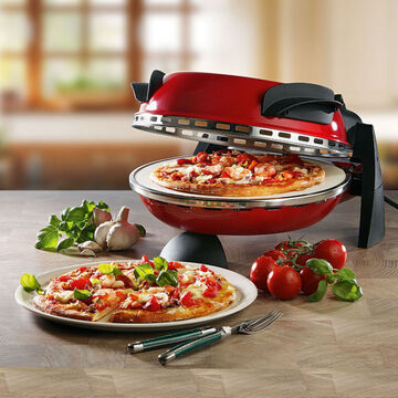Nur superheiß (über 350 °C) und blitzschnell (maximal 5 Minuten) gebacken, schmeckt Pizza oder Calzone so gut wie aus dem Steinbackofen in Italien. Von außen kross und knusprig, der Belag wunderbar saftig. Dank kleinem Garraum mit Backstein erreicht der superstarke Pizzabäcker nach nur 10 Minuten Vorheizzeit ideale Pizza-Backtemperaturen bis zu 400 °C. Überschüssige Feuchtigkeit nimmt sein feuerfester Backstein aus dem Teig. Dennoch ist der Pizzaofen für zuhause im Verbrauch sparsamer als jeder herkömmliche Backöfen. Erfüllt die strengen Sicherheitsauflagen der Temperaturbegrenzung für berührbare Oberflächen.