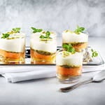 Schöner servieren in ovalen Vorspeisengläsern. Überraschen Sie Ihre Gäste mit einem ausgefallenen "Gruß aus der Küche". "Amuse bouches" oder "Amuse gueules" werden in Frankreich diese kleinen feinen Vor-Vorspeisen genannt. In den ovalen Gläsern kommen sie besonders gut zur Geltung. Hergestellt wird die ausgefallene Form in Frankreich ausschließlich für die gehobene Gastronomie. Nun können Sie auch zu Hause Ihre feinen Vorspeisen professionell anrichten. Servieren Sie darin zum Beispiel Meeresfrüchte, feine Süppchen oder eine raffiniert geschichtete Mousse.