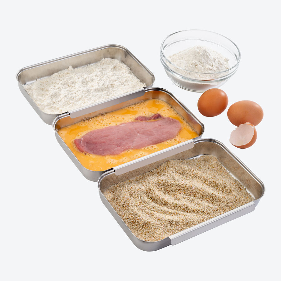 Panierschalen: Schnell und sauber panieren, marinieren und portionieren.