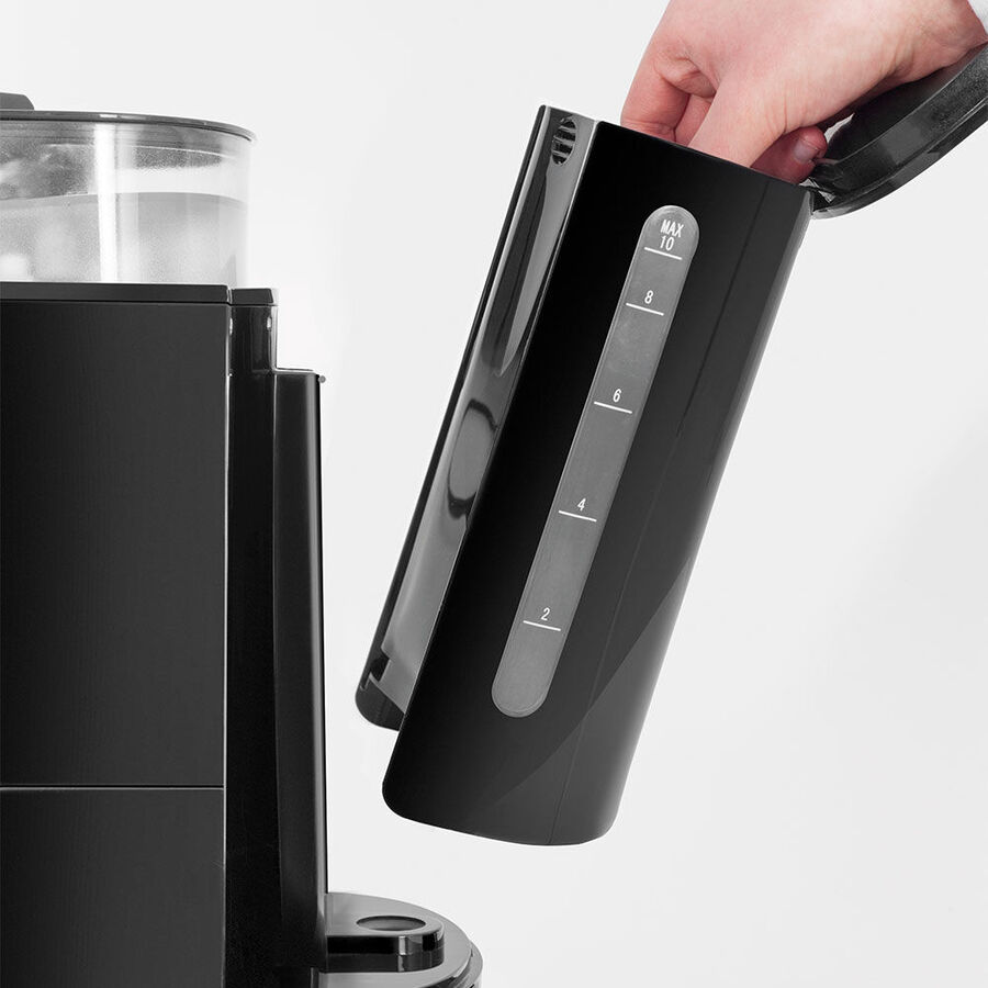 • 10 Mahlgrade und 2 Kaffeestärken einstellbar