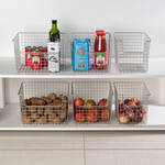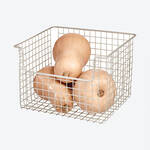 Ganz gleich, ob frisches Obst, Gemüse oder auch Vorräte wie Zucker, Mehl oder Konserven - alles, was nicht im Kühlschrank gelagert wird, ist in diesen Körben aus solidem Metall bestens aufgehoben. Hochstabil und dennoch leicht beweglich sind sie ideal zur Lagerung in Regalen. So haben Sie alles im Blick und dank des praktischen Griffausschnitts auch schnell zur Hand. Zur Reinigung einfach mit einem feuchten Tuch abwischen.