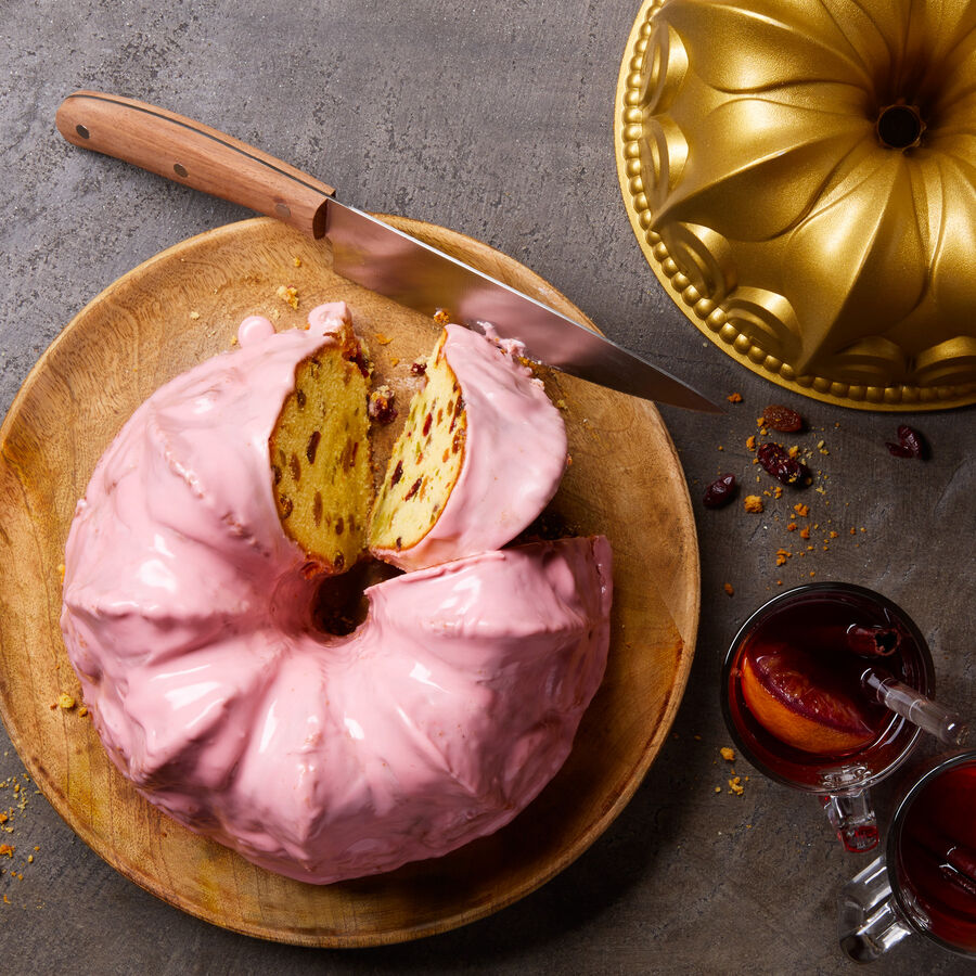 Die Hagen Grote Backform aus dickwandigem Gussaluminium verfügt neben Kupfer über höchste Wärmeleitfähigkeit. Gleichmäßige Hitzeverteilung trägt entscheidend zu perfekt durchgegarten, schön gebräunten Kuchen bei. Dank zweifacher Antihaftbeschichtung lösen sich die kunstvollen Details des schönen Kuchens leicht und unbeschädigt aus der Kuchenform. Mit Fruchtstücken, Puderzucker, Glasuren, Kuvertüren dekoriert entstehen prachtvoll gestaltete Kreationen.