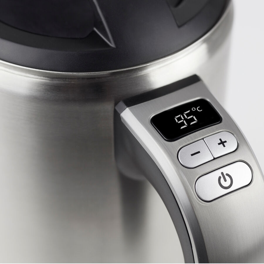 Überlassen Sie nichts dem Zufall und genießen Sie Tee und Kaffee perfekt gebrüht. 12 exakte Temperaturstufen zwischen 40 °C und 100 °C stehen zur Auswahl. Espresso entfaltet bei ca. 95 °C sein volles Aroma, fein gemahlene Kaffees (90 °C) oder grüner Tee (80 °C) werden nicht ganz so heiß gebrüht. Ist die gewünschte Temperatur erreicht, schaltet der Wasserkocher automatisch in einen 60-minütigen Warmhalte- Modus. Dank doppelwandigem Isolier-Korpus aus hochwertigem Edelstahl bleibt das Äußere des Wasserkochers angenehm kühl. 1 Liter Wasser kocht in wenigen Minuten.