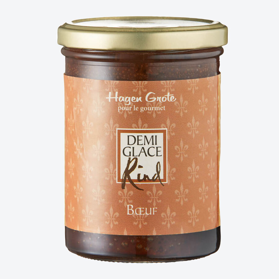 Über 50 kg Fleisch, Fisch oder Geflügel sind notwendig für nur 1 kg Demi-Glace. Zuerst wird aus Fleisch, Knochen, Röstgemüse, Wein und Gewürzen ein klassischer Fond zubereitet. Nach dem Entfetten beginnt das Reduzieren. Aus einer riesigen Menge Fond entsteht durch Einkochen dieses unglaubliche Konzentrat. Rühren Sie ein oder zwei Löffelchen Demi-Glace in Saucen, Suppen oder Ragouts. Sofort entwickelt sich eine wunderbar intensive Duft- und Geschmacksfülle, die Sie mit anderen Mitteln nicht erreichen können. Unsere Demi-Glace enthält keinerlei "Chemie". Absolut tabu sind im Gegensatz zu Industrieprodukten übliche Geschmacksverstärker, Farb- und Konservierungsstoffe oder Glutamate (enthält Hefeextrakt).
