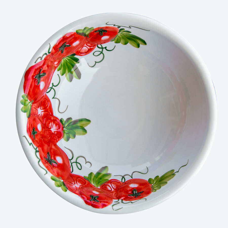 • Produktbild für 'Salatschüssel: Traditionelle Keramik mit handbemaltem Tomatendekor'