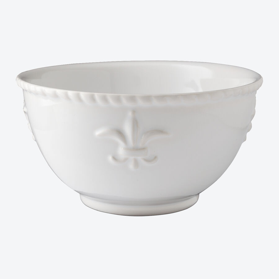 Zur guten Küche gehört edles Geschirr. Seit dem 12. Jahrhundert ist die Lilie das Symbol der französischen Aristokratie und repräsentiert königliche Lebensart. In plastisch fein hervorgehobener Darstellung ziert die heraldische Lilienblüte, auch als Fleur-de-Lys bekannt, dieses edle Fayence Geschirr. Der aufwendig gestaltete Kordelrand unterstreicht die kultivierte Anmutung. Es fördert als vorzüglicher Rahmen den optischen Eindruck schön angerichteter Speisen der gehobenen Kochkunst. Genießen Sie täglich und bei festlichen Anlässen die dezent feudale Ausstrahlung dieses Geschirrs. Reinweißes Fayence Geschirr, mikrowellengeeignet, spülmaschinenfest.
