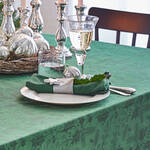 Ein Spaziergang durch den kanadischen Winterwald inspirierte die Künstlerin Elisa Cachero zu diesem Dessin. In sattem Tannengrün bilden Ilexblätter, Pinienzweige und Hagebutten eine einträchtige Komposition, die jede weihnachtliche Tafel ziert. Um der dargestellten Formenvielfalt gerecht zu werden, wurde die Tischwäsche aus hochwertiger Baumwolle in Jacquard-Technik gewebt. Nur so lassen sich die vielen Details abbilden. Die Verwendung vorgefärbter Garne garantiert höchste Farbechtheit. Auch nach vielen, vielen Wäschen wird diese Tischwäsche Ihre Gäste mit ihrer Pracht bezaubern. Hochwertig verarbeitet, mit sauber und fest vernähten Rändern.