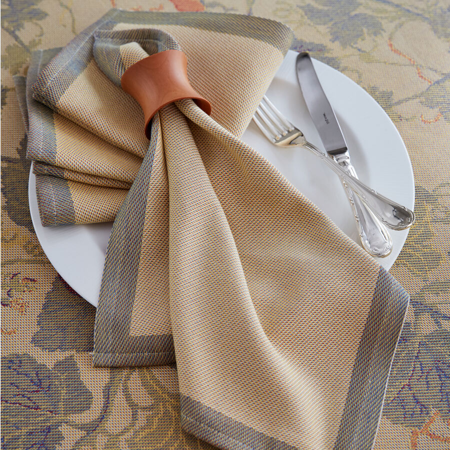 Der wundervoll geformte Moschuskürbis (Cucurbita moschata) diente der schwedischen Designerin Birgitta Liedgren als Modell für Ranken, Blätter und Früchte. Für die Herstellung der geschmackvollen Tischwäsche entwickelte Ekelund in Schweden als ältestes, schon 1692 gegründetes, familiengeführtes Textilunternehmen der Welt das revolutionäre Regenbogenverfahren. Gewebt wirken die fantastischen Formen in warm leuchtenden Farben wie ein impressionistisches Gemälde. Die Weberei Ekelund ist schwedischer Hoflieferant. Auch der Kremel und Japans Kaiser Akihito sind Ekelund-Kunden. Hochwertigste Baumwollgarne werden in schwere Qualität von 315 g/m² (Tischläufer 385 g/m²) gewebt. Das macht die Tischwäschen um ca. 50 % stärker und erheblich dauerhafter als üblich. Waschbar bei 60 °C, nicht trocknergeeignet.