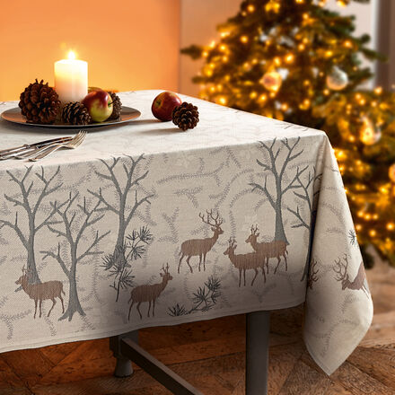 Rentiere durchstreifen den Wald, lautlos fällt der Schnee. Die ruhige Schönheit der winterlichen Natur hat die schwedische Designerin Veronica Seipel für diese hochwertige Tischwäsche meisterhaft eingefangen. Von Ekelund in Schweden, dem ältesten familiengeführten Textilunternehmen der Welt, nach patentiertem Verfahren aus dauerhafter, besonders dicht gewebter Baumwolle gefertigt.