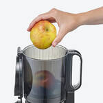 Das sanfte Entsaften bei nur 40 U/min ist hocheffektiv. Die langsam rotierende Pressschnecke vermeidet schädliche Wärmeentwicklung, mehr Vitamine und Nährstoffe bleiben erhalten. Ganze Früchte passen in den 13 cm großen Einfüllschacht des Entsafters, nichts muss vorgeschnitten werden. Selbst die Verarbeitung von hartem Gemüse wie Karotten ist für den leistungsstarken 250W-Motor kein Problem.