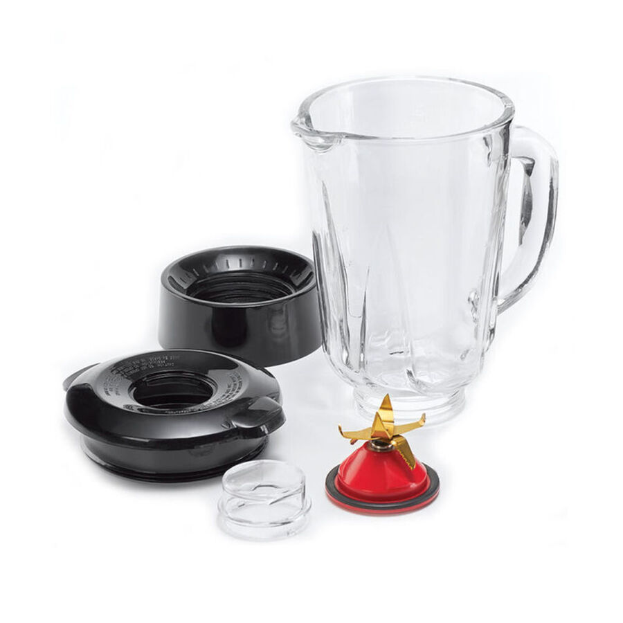 Kunststoff- Korpus, 18,5 x 20 x 41 cm (B/T/H), wiegt 5 kg, rutschfest gummierte Füße, 230V/1.000W. 1,5 l Glaskrug mit Messskala, Edelstahlmesser titanbeschichtet, 90 cm Anschlusskabel, geprüfte Sicherheit.