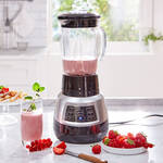 Mit 4 Automatikprogrammen gelingen Smoothies, eisgekühlte Getränke, Suppen und Crushed Ice schnell und mühelos. Ebenso einfach zerkleinern Sie harte Lebensmittel wie Eiswürfel, gefrorenes Obst und Nüsse mit 3 manuell einstellbaren Geschwindigkeitsstufen bis 22.000 Umdrehungen in der Minute. Das optimale Aufbrechen empfindlicher Zellstrukturen von Obst und Gemüse ermöglicht zudem eine nährstoffreiche Zubereitung. Ganze Arbeit leistet dabei das 6-flügelige titanbeschichtete Edelstahlmesser, das zur einfachen Reinigung herausnehmbar ist.