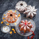 Die weihnachtlichen Kuchenformen aus dickwandigem Gussaluminium verfügen über beste Wärmeleit- und -speicherfähigkeit für perfekte Rührkuchen. Dank hochwertiger Antihaftbeschichtung lösen sich die kunstvollen Details leicht aus der Form, nichts haftet an.