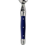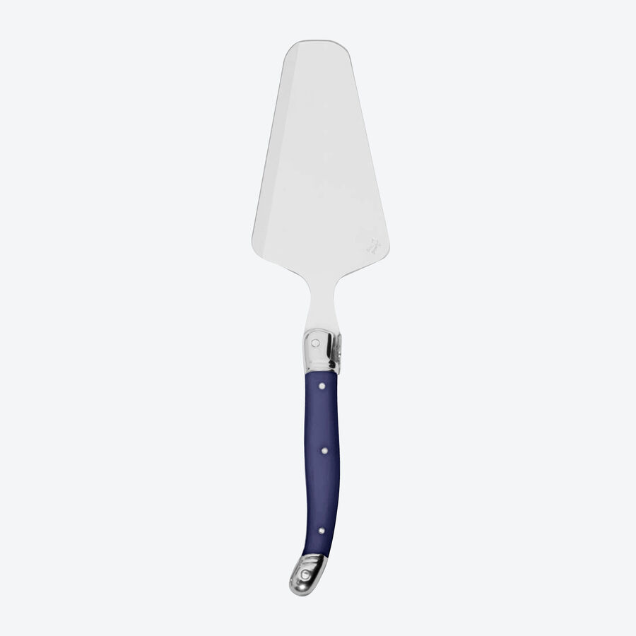 Die charakteristisch gerundeten Griffe und der typisch vernietete Schaft mit der Biene als Markenzeichen sind unverkennbar Laguiole. Seit 1892 bürgt der traditionsreiche Name aus der Auvergne für Kunstschmiedearbeit erster Güte. Das zeitlos klassische Design des Bestecks harmoniert mit jedem Geschirr und verleiht Ihrer Kaffeetafel zusätzlichen Glanz. Das scharfe Tortenmesser mit 12 x 4 cm breiter Klinge dient auch als Tortenheber. Alle farbigen Griffe passen exakt zu unserem klassischen Laguiole-Tafelbesteck.