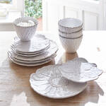 Exotische Blüten- und Palmblätter inspirierten bereits 1884 Rafael Bordalo Pinheiro zu den Entwürfen seiner kunstvollen Keramik. Bis heute produziert seine damals im portugiesischen Caldas da Rainha gegründete Manufaktur dekorative Teller und Schalen, die weltweit Tisch und Tafel von Jetset bis Hochadel schmücken. In Form gegossen und von Hand glasiert erhält jedes der detailreichen Stücke seine individuelle Optik. Neben klassischem Grün gibt es eine dezente weiße Variante, die allein oder im Farbmix ihre mediterrane Schönheit entfaltet.