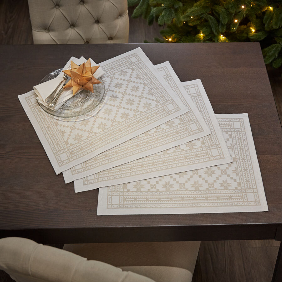 Tischwäsche Weihnachtsstern, Tischsets 35 x 48 cm, 4 Stück, creme