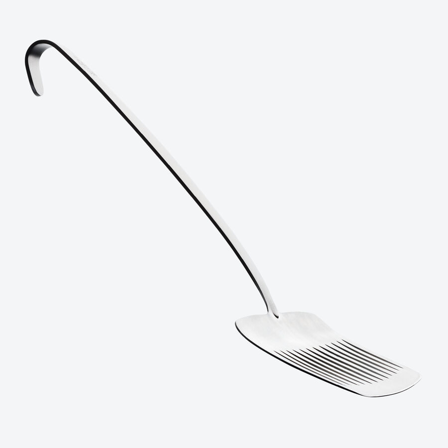 Dank der übergroßen Hebefläche von 18 x 7,5 cm gelingt das Umbetten von Spargel oder anderen empfindlichen Lebensmitteln mühelos. Die extra große, leicht gebogene Schaufel in Kombination mit dem langen, breiten Stiel sorgt für sicheren Griff. Dank großzügiger Ablaufschlitze kann Kochwasser schnell ablaufen. Vielfältig einsetzbar für Spargel, Fisch, Fleisch, anderes Koch- oder Grillgut.