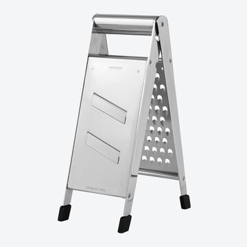 Ultrascharfe Edelstahl-Klappreibe mit Reibfläche und Hobel