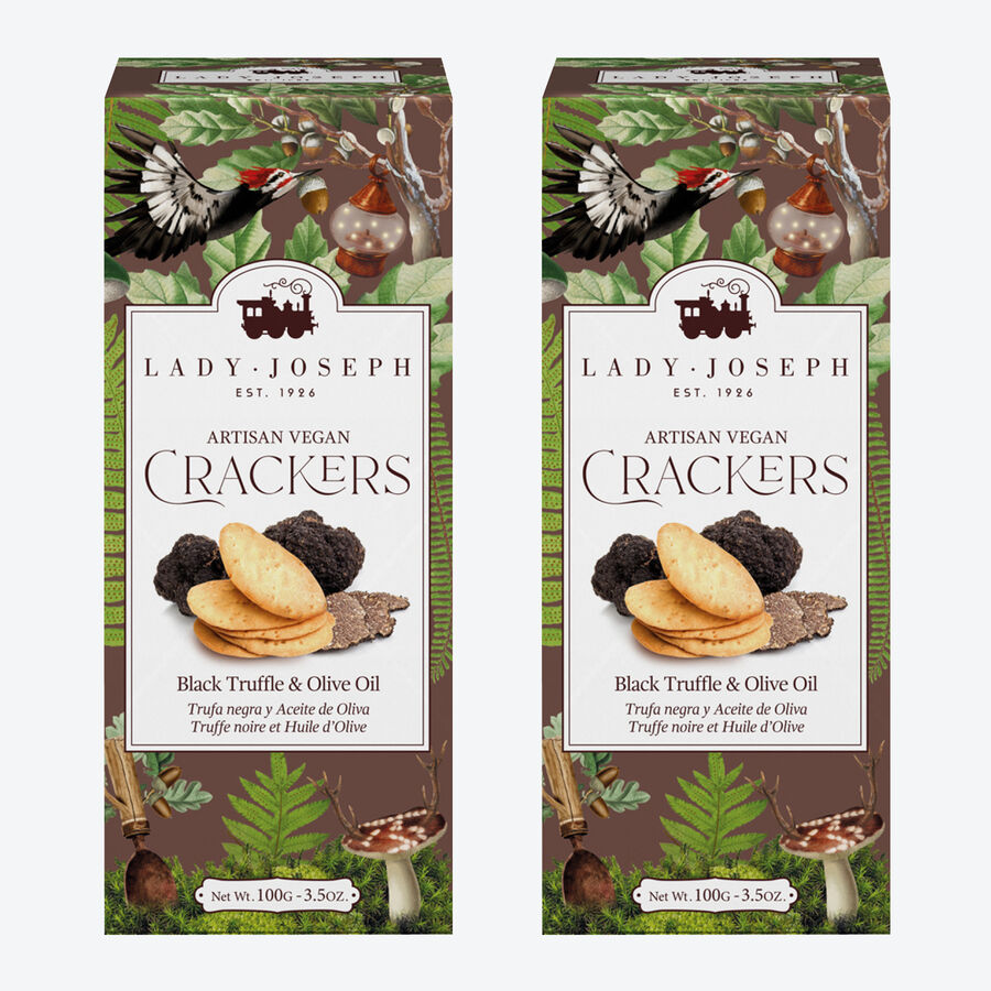 Das exquisite Aroma des echten schwarzen Trüffels (Tuber Melanosporum Vitt) gibt diesen sorgfältig in Handarbeit gefertigten Crackern ihren einzigartigen, natürlich intensiven Geschmack. Der Trüffel wird auf der größten Eichelplantage der Welt, nahe der spanischen Stadt Sarrión (Provinz Teruel) geerntet und dann in nativem Olivenöl extra infundiert. Darüber hinaus werden nur beste, reine Zutaten aus möglichst regionaler Herkunft der spanischen Region La Rioja, wie speziell angebauter Weizen für die Cracker verwendet. Das Mahlen des Mehles von Hand und die extra lange Teigführung über mindestens 12 Stunden machen sie besonders aromatisch. Das schonende Backen bei niedrigen Temperaturen sorgt für eine extra feine, knusprige Textur und den Erhalt wertvoller Nährstoffe. Ein Hochgenuss ist dieses köstliche Salzgebäck zu Wein und Käse. Frei von Palmöl sowie jeglichen Zusatz- oder Konservierungsstoffen. Cracker 100 g