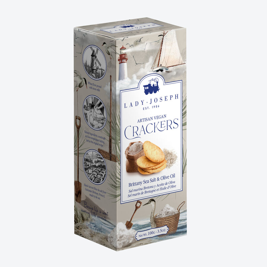 Salz aus den berühmten Salzgärten von Guérande, gibt diesen sorgfältig in Handarbeit gefertigten Crackern ihren einzigartigen, natürlich intensiven Geschmack. Das natürliche Meersalz mit seiner unverwechselbaren grauen Farbe ist reich an Mineralsalzen und Spurenelementen, unraffiniert, ohne Zusatzstoffe und sonnengetrocknet. Seit Generationen wird es von den Paludiers auf die gleiche Weise von Hand geerntet. Darüber hinaus werden nur beste, reine Zutaten aus möglichst regionaler Herkunft der spanischen Region La Rioja, wie natives Olivenöl extra und speziell angebauter Weizen für die Cracker verwendet. Das Mahlen des Mehles von Hand und die extra lange Teigführung über mindestens 12 Stunden machen sie besonders aromatisch. Das schonende Backen bei niedrigen Temperaturen sorgt für eine extra feine, knusprige Textur und den Erhalt wertvoller Nährstoffe. Ein Hochgenuss ist dieses köstliche Salzgebäck zu Wein und Käse. Frei von Palmöl sowie jeglichen Zusatz- oder Konservierungsstoffen. Cracker 100 g