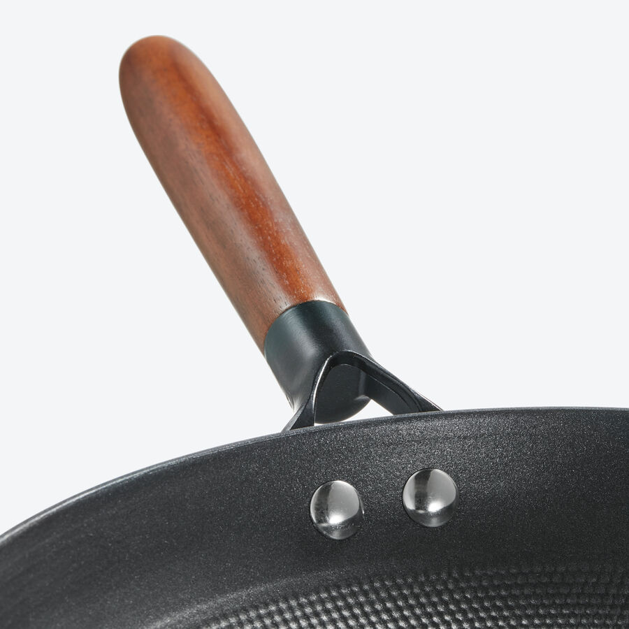 Gusseisen emailliert, 3-fache Wabenstruktur-Antihaftbeschichtung, Ø 28 cm, 5,5 cm hoch, wiegt 1,5 kg, Holzgriff, für alle Herdarten einschließlich Induktion, Handwäsche empfohlen.
