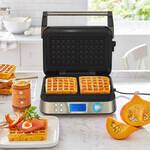 In wenigen Minuten betriebsbereit berechnet die intelligente Steuerung automatisch die Backzeit für unterschiedliche Waffeln wie belgische Waffeln aus Hefeteig, klassische Waffeln aus Rührteig, Schokowaffeln oder Buttermilchwaffeln. Gleichmäßige Wärmeverteilung durch Ober- und Unterhitze sowie der 7-fach wählbare Bräunungsgrad garantieren besonders knusprige Backergebnisse. In den extra tiefen, antihaftbeschichteten Backformen bleiben Waffeln besonders luftig.
