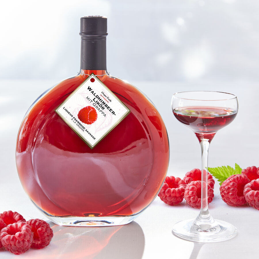 Waldhimbeer-Likör: Fruchtige Waldhimbeeren und Vanillearomen verfeinern edlen Grappa