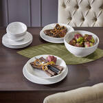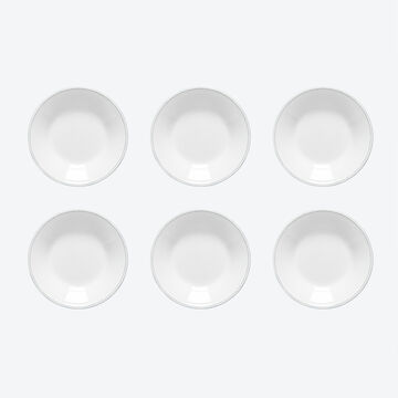 Edle Schlichtheit, unbegrenzte Vielseitigkeit und außergewöhnliche Haltbarkeit zeichnen dieses einzigartige Fayence-Geschirr aus. In klarem Weiß gehalten, entsteht es in aufwendiger Herstellung. Zarte, handbemalte Rillen mit dezent grauem Strich schmücken den Rand eines jeden Stücks. Stilvoll und zugleich zwanglos setzen Sie feine Gerichte damit festlich in Szene.