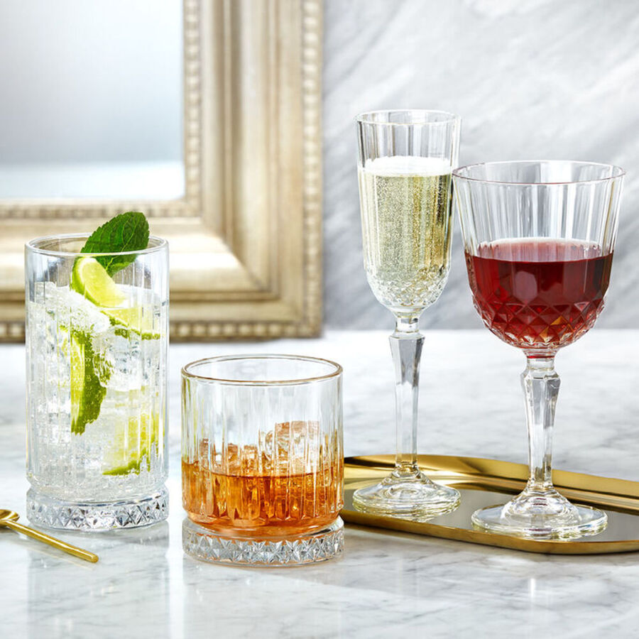 Inspiriert durch die Gatsby-Ära in den 1920er Jahren und den Art Déco Stil dieser Zeit entstanden diese Tumbler aus Kristallglas mit ihrer eleganten, klaren Form. Vertikale Linien werden durch ein dezentes Diamant-Design abgerundet. Der besondere Schliff lässt Scotch Whiskys oder gemixte Getränke in den hochtransparenten, klaren Gläsern wirkungsvoll zur Geltung kommen. Für den täglichen Gebrauch geeignet.