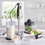 Der leistungsstarke 700-Watt-Stabmixer verfügt über einen revolutionären Emulgieraufsatz, der das Binden von selbst schwer mischbaren Flüssigkeiten ermöglicht. Frische Salatdressings, Vinaigrette, Aioli, Mayonnaise, Sauce Hollandaise oder Bernaise gelingen problemlos. Der Zerkleinerer raspelt Parmesan, Schokolade und andere harte Zutaten. Mit dem besonders scharfen Messeraufsatz stellen Sie Saucen, Dips, Babynahrung, Shakes und Smoothies her.
