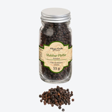 Malabar-Pfeffer ist ein unverzichtbarer Klassiker in der feinen Küche. Anders als üblich, lassen wir ihn nach der Ernte mild rösten. Das steigert sein kraftvoll würziges Aroma und den angenehmen Duft. Ideal passt Malabar-Pfeffer zu dunklen Saucen, Schmorgerichten, aber auch zu hellem Fleisch, Fisch, Meeresfrüchten. Sensationell: Frische Erdbeeren, alter Aceto Balsamico und einem Hauch frisch gemahlener Malabar-Pfeffer.