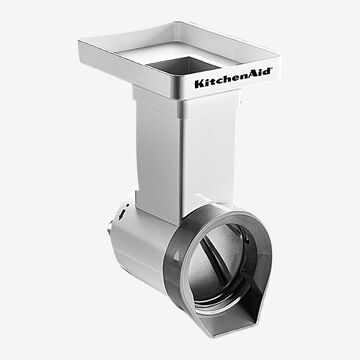 Zur Verwendung mit der KitchenAid Küchenmaschine. Schneidet und raspelt alle Sorten von Gemüse, reibt Käse, zerkleinert Nüsse, Mandeln und Schokolade. Im Lieferumfang sind das Gehäuse, ein Stampfer sowie 3 verschiedene Trommeln zum Schneiden sowie zum feinen und groben Raspeln enthalten. Kunststoff und Edelstahl, 41 x 12 x 24 cm hoch, wiegt 1,25 kg, nicht spülmaschinenfest.