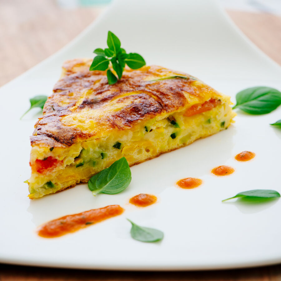 • Produktbild für 'Zucchini-Spaghetti-Frittata auf Tomaten-Basilikum-Sauce'